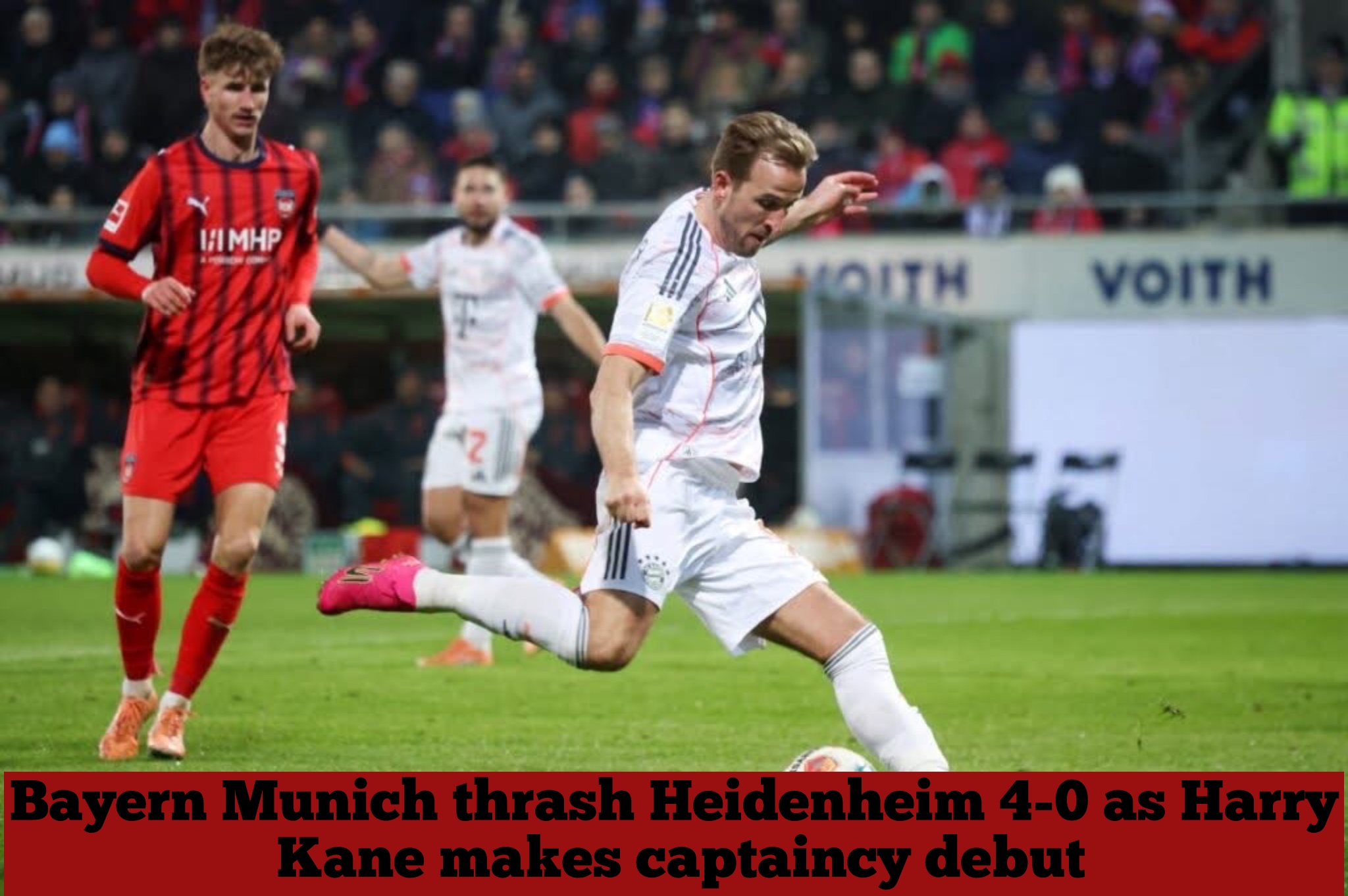 Bayern Munich cruised to a 4-0 away win over Heidenheim on Sunday, extending their Bundesliga lead to nine points in Harry Kane’s first match as Bayern captain.