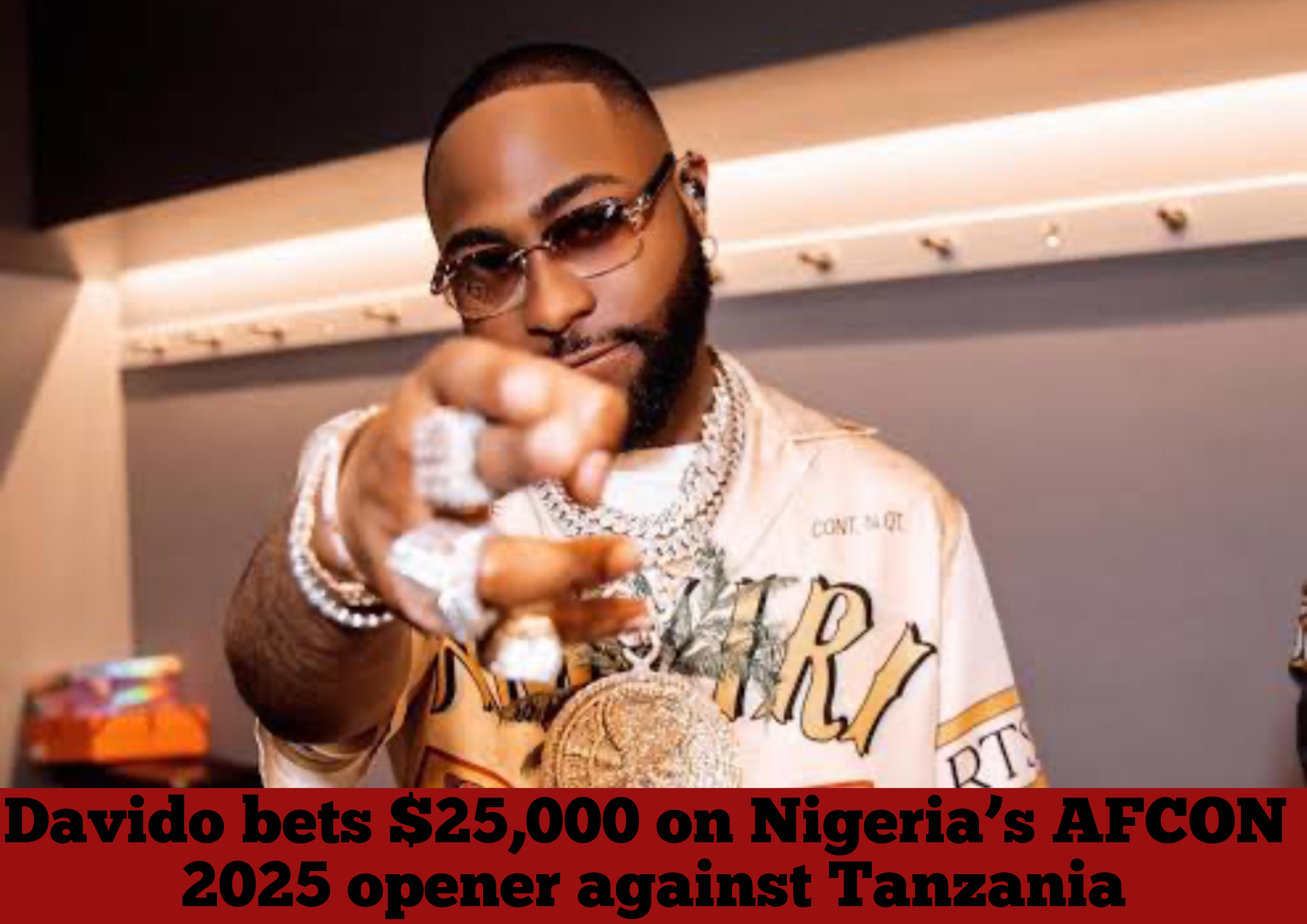 Pop superstar Davido has shown his passion for football ahead of AFCON 2025 by betting $25,000 (about ₦36 million) on Nigeria’s opening Group C match against Tanzania.